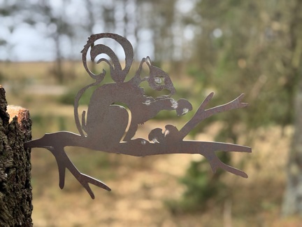 Dette charmerende egern i 3mm cortenstål sidder roligt på en gren og nyder en nød – en hyggelig lille scene, der bringer liv og personlighed til haven. Med målene 32 x 22 cm er figuren ideel til montering i træer, på stakitter eller andre lodrette flader, hvor den smelter naturligt ind i omgivelserne.