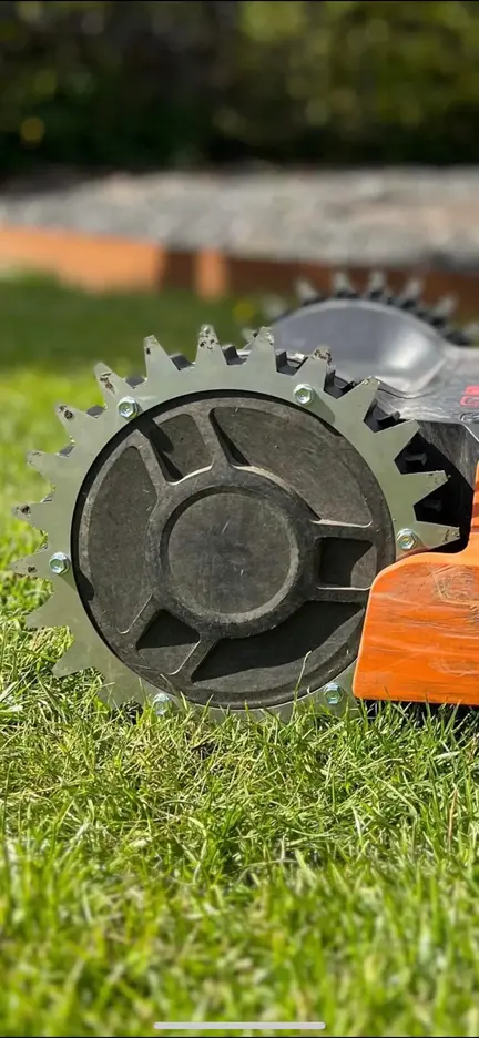 Oppnå optimalisert grep på en Worx Landroid L med våre pigger. Med pigger gjør du robotklipperen i stand til å navigere enkelt og trygt i ujevnt terreng og i vått vær. Hvis du monterer pigger på en Worx Landroid L, får du også den ekstra fordelen at piggene våre fungerer som plenluftere samtidig som plenen klippes, ettersom piggene trenger inn i jorden og skaper ekstra luft for gressrøttene.